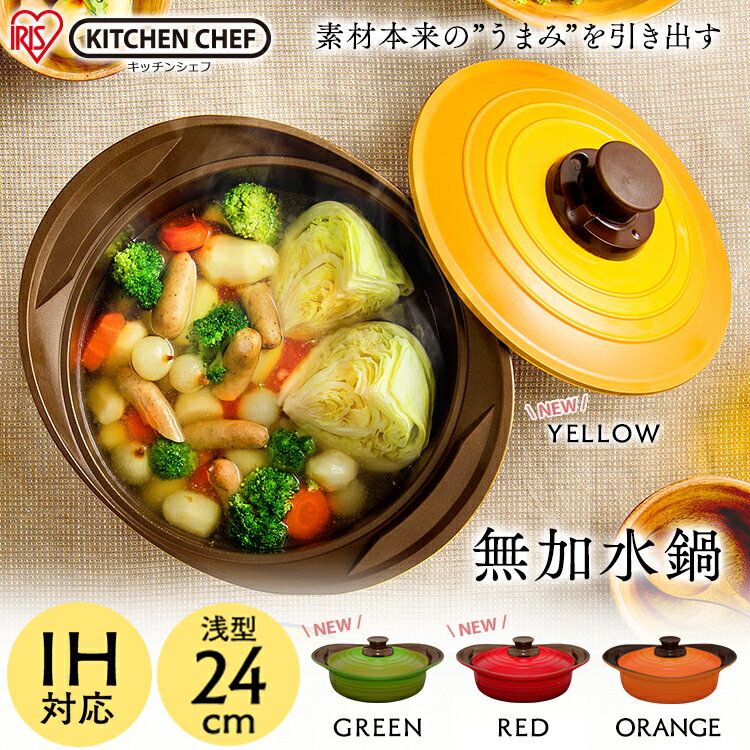 鍋 無加水鍋 24cm 浅型 IH対応 MKS-P24SIH 鍋 無油調理 IHヒーター ih対応 無水調理 両手鍋 調理器具 素材 うまみ 旨み 水分 24cm おしゃれ セラミック シリコン お手入れ簡単 簡単 アイリスオーヤマ