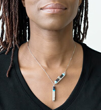 カナダ特産のピューターを元に、ガラス・牛革・レジン(樹脂)・木などありとあらゆる素材を組み合わせたアクセサリーは、自由な発想から生み出されるアートの世界を作り上げます。