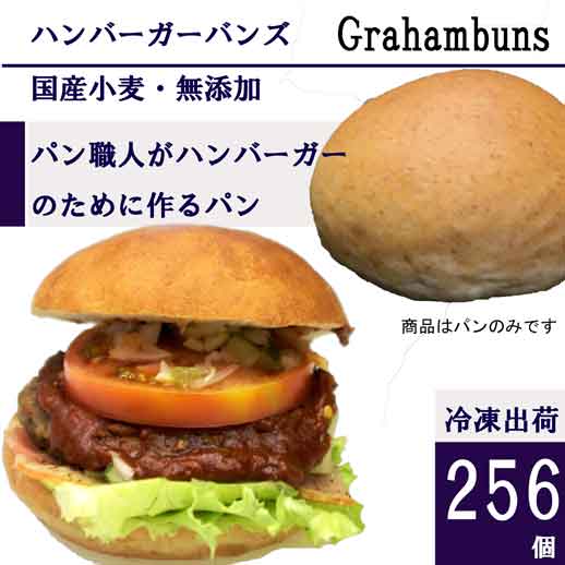 ハンバーガー用グラハム(全粒粉)バンズ レギュラー直径10cm■256個■国産小麦・無添加【冷凍出荷】